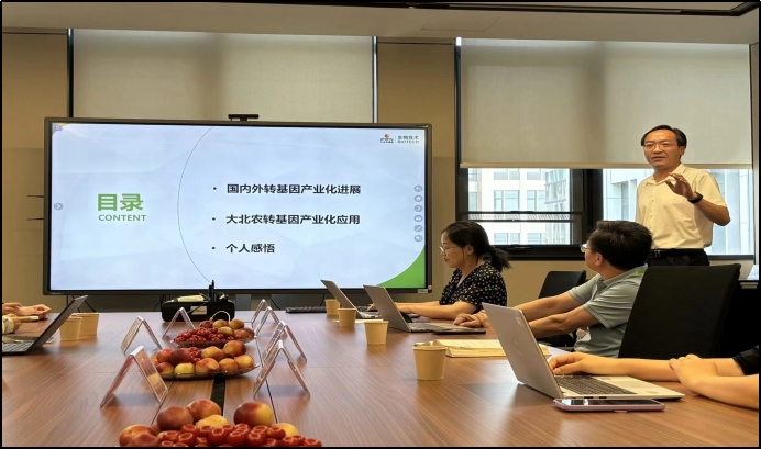 另外,考虑到生物育种班同学对目前市场发展现状的求知,牟勇向老师和同学们体系地介绍了目前转基因产业化的进展和大北农在此领域的应用,并从个人角度向同学们提供了在学习及日常生活方面的宝贵建议。