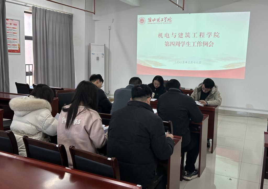 3月18日下午4时,beat365会员官方网站第四周学生工作例会在行政楼214会议室举行,会议由院党总支书记助理邓金鑫主持,院团总支书记张亚飞及全体辅导员参会。