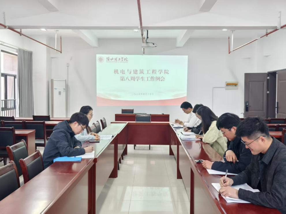 4月15日下午4时,beat365会员官方网站于行政楼214会议室召开第八周学生工作例会。学院党总支书记助理邓金鑫主持会议,团总支书记张亚飞及全体辅导员参会。