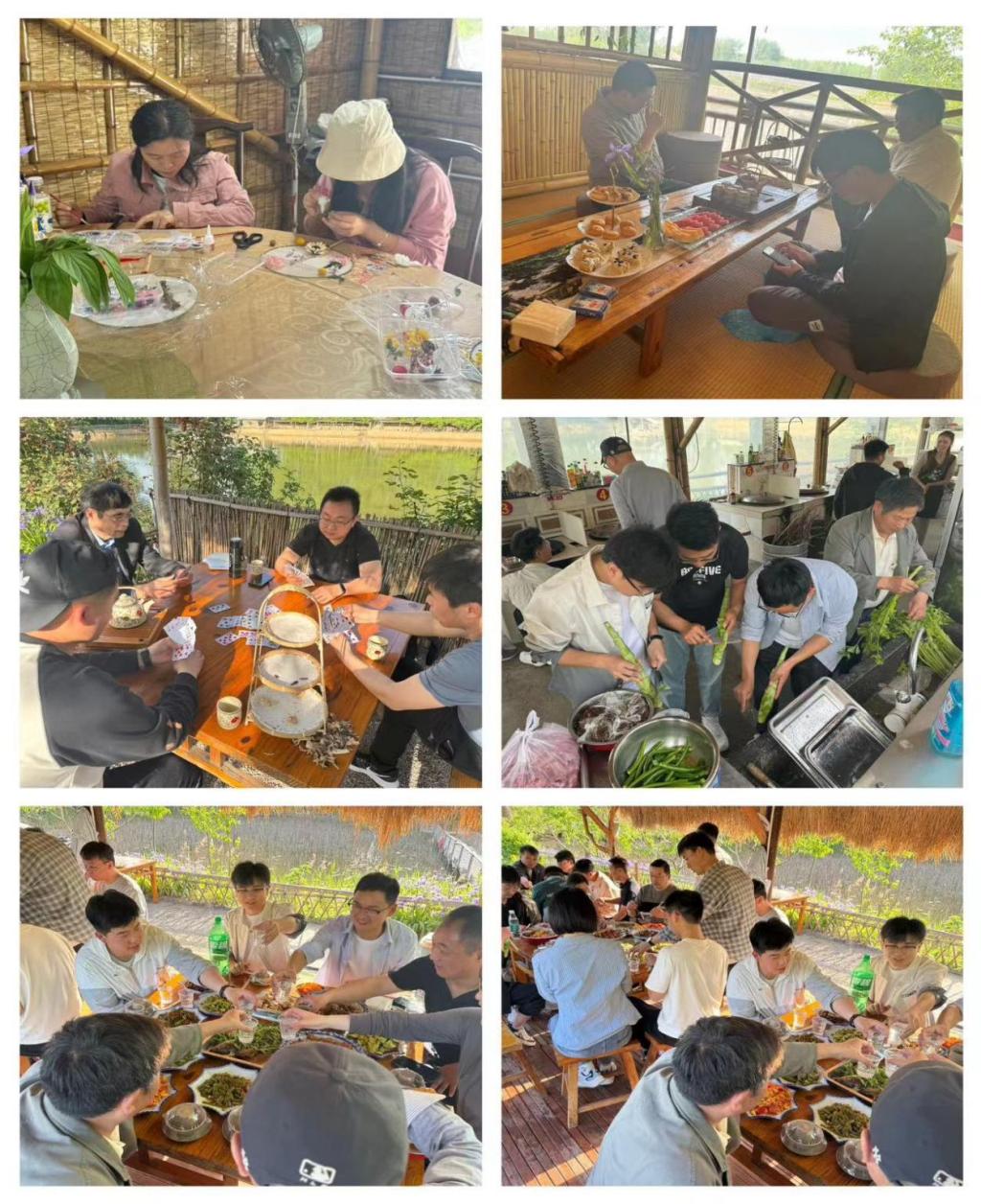 在庄园内,老师们还参与了一系列丰富多彩的活动。大家动手制作粘花,将一片片花瓣粘贴成美丽的花朵,既锻炼了动手能力,又培养了耐心和细心。茶屋休闲环节,老师们品茗论道,畅谈人生,享受着难得的宁静时光。此外,地锅自助炒菜项目更是让老师们大展厨艺,大家齐心协力,烹制出一道道美味佳肴,共享美食的快乐。