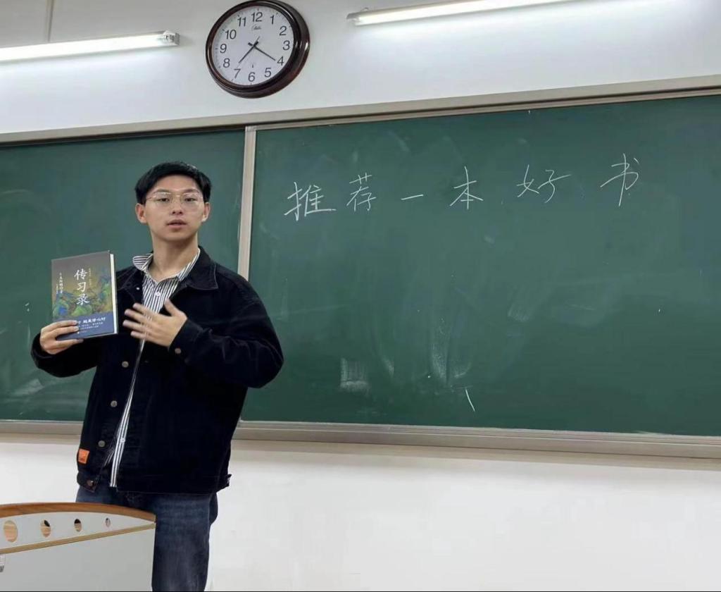 活动伊始,2023级智能制造一班进行了走进文学巨匠人物介绍会,团支书宇文昕羽向同学们介绍了“列夫尼古拉耶维奇托尔斯泰”这位世界的文学巨匠的代表作《战争与和平》以及被推荐的好书《复活》,并鼓励同学们向书中主人翁的精神学习。紧接着,又进行了经典作家推荐会,会议上,团支书向同学们推荐了明代的著名文学家、军事家、政治家、书法家,王阳明,号召同学们向王阳明学习,好好把握自己的妄念,努力解决自身烦恼,通过改变自身,达到从根源上消灭烦恼的目的。