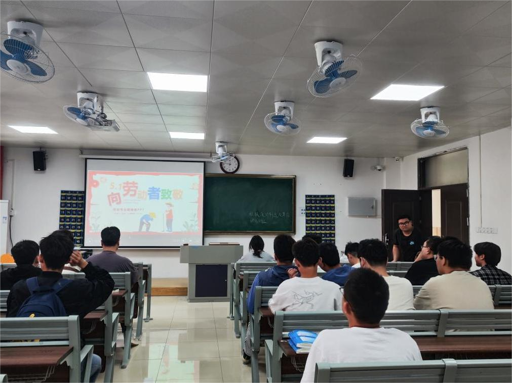 活动过程中,各班班长通过视频、PPT形式,带领同学们了解“五一”劳动节在国内外的发展历程,随后深入学习了中国共产党人精神谱系中的劳模精神、劳动精神和工匠精神,引导同学们深刻领会其意义与内涵。