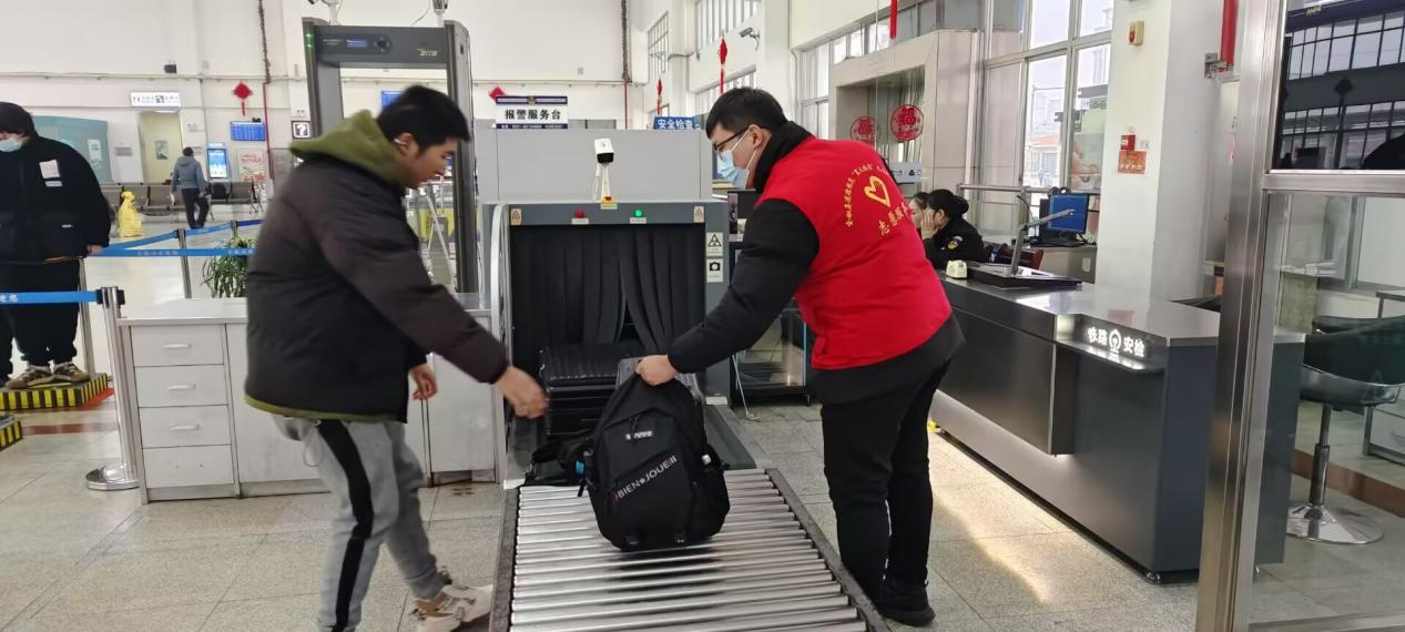 2024级机械设计制造及其自动化专升本二班马勇骁同学积极参与全椒县"暖冬行动"志愿服务。活动中,他主要负责火车站安检口的秩序维护,面对绵长的安检队伍,他耐心引导旅客有序排队,提醒旅客提前取出液体、充电宝等需要检查的物品,及时帮助行动不便的旅客搬运行李,同时对旅客疑问作出解答。
