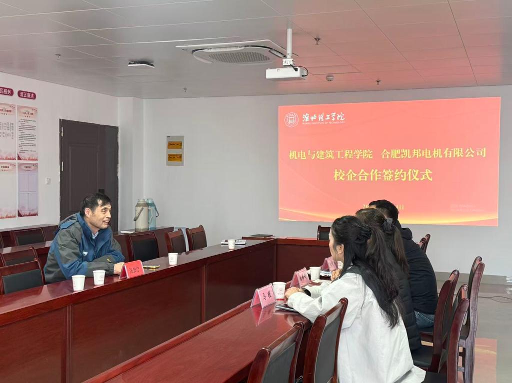 活动伊始,合肥凯邦电机有限公司负责人一行莅临beat365官网办公室,与学校及学院相关部门负责人举行座谈。会上,我校就业科李魏科长全面介绍了学校的整体就业工作情况、毕业生优势以及推进校企合作的积极政策。随后,beat365官网教务秘书朱良恒老师详细介绍了学院的发展历程、专业特色、人才培养模式及2026届毕业生的基本情况。企业负责人对学院的热情接待表示感谢,并详细阐述了合肥凯邦作为格力电器全资子公司的企业实力、领先的研发生产技术、完善的人才培养体系以及本次面向beat365官网毕业生的具体用工需求和长远合作愿景。双方围绕人才联合培养、实习基地建设、产学研项目合作等议题进行了深入交流,为后续合作奠定了坚实基础。