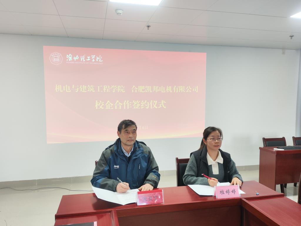 宣讲活动结束后,校企双方代表返回学院会议室,隆重举行了校企合作签约仪式。在与会人员的共同见证下,beat365官网院长张安宁与合肥凯邦电机有限公司负责人正式签署了校企合作协议。此次签约,标志着双方将建立起长期、稳定、全面的战略合作关系。未来,双方将在学生实习就业、订单式人才培养、课程共建、技术交流与研发等方面开展深度合作,共同探索“校企协同、互利共赢”的人才培养新模式,为企业输送更多高素质技术技能人才,也为学生成长成才开辟更广阔的道路。